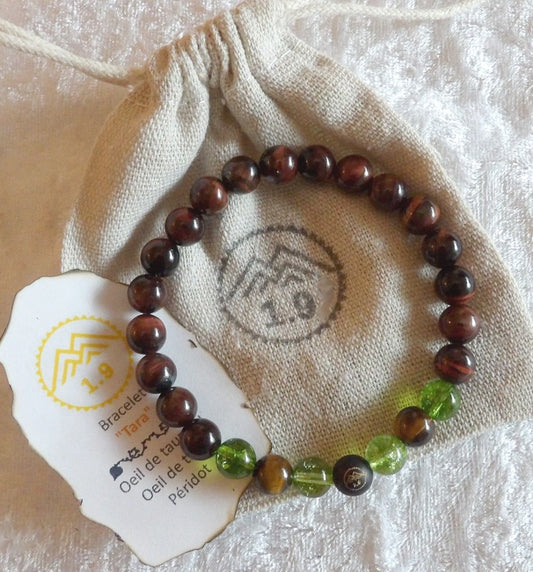Bracelet homme Péridot Oeil de tigre Oeil de taureau "Tara"