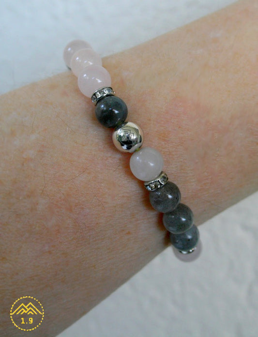 Bracelet femme Labradorite Quartz rose & strass "udaberria"