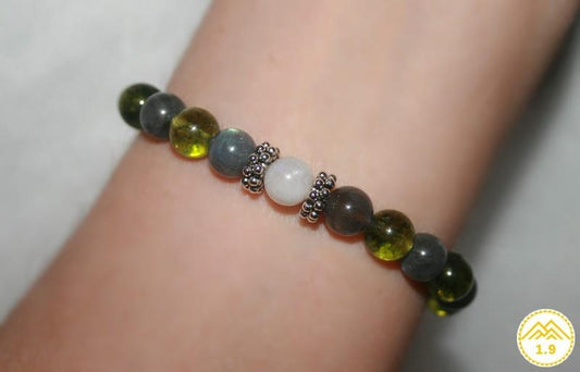 Bracelet femme Pierre de lune Peridot Labradorite "Ilargi Berdeak"