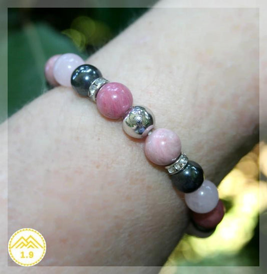 Bracelet femme strass Rhodonite Quartz rose Hematite "Dobinane Garazi"