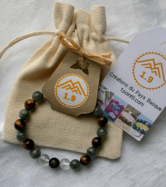 Bracelet femme Labradorite Oeil de tigre Cristal de roche "Pottok"
